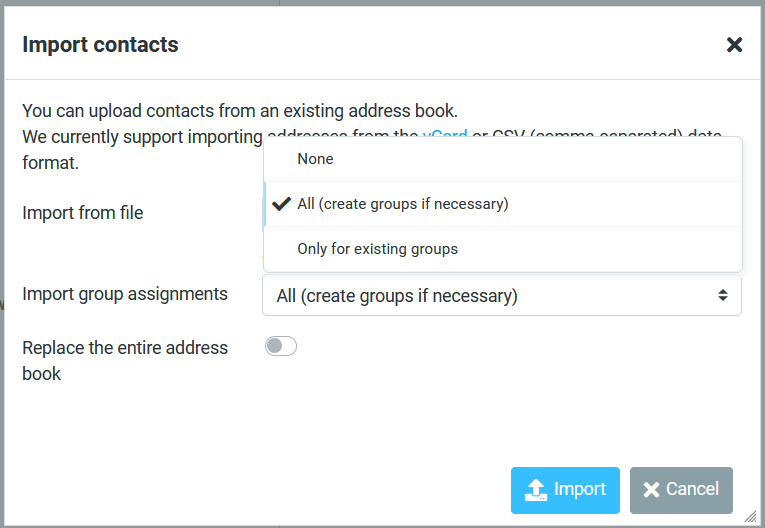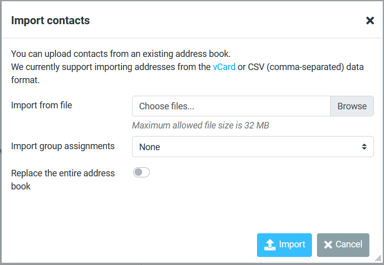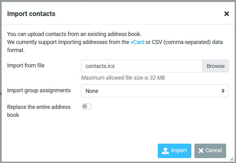 Import contacts into Roundcube Webmail