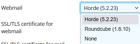 Once on the Mail Settings page, scroll down to the drop-down box called ‘Webmail‘, it will currently have ‘Horde (5.2.23)‘ selected. Change this selection to ‘Roundcube (1.6.10)‘ as shown below: